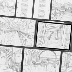 These wedding backgrounds are perfect for romantic storytelling, event design illustrations, and fairytale concept art. With ready-made ceremonies and receptions, you can instantly capture the magic of weddings — from cathedral interiors to sunset garden vows. Whether you’re illustrating bridal scenes, designing invites, or creating personal projects, these Procreate backgrounds add beauty and romance to your art in seconds.