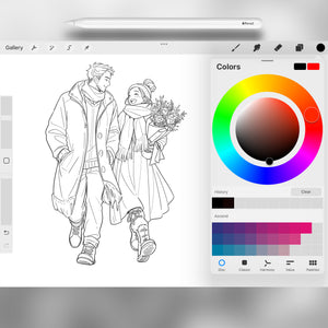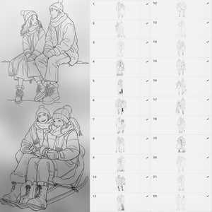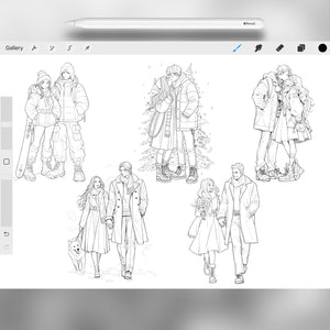 This romantic stamp set is made for artists who want to draw couples in winter attire, design love scenes, sketch seasonal illustrations, or add heartwarming characters to their art.