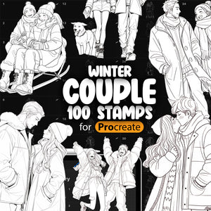 Join & Download freeβ‘ Improve your Procreate artwork with winter couple stamps in seconds!