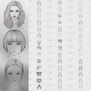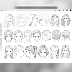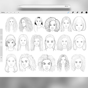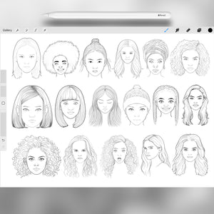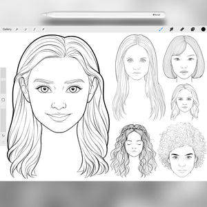 This Procreate stamp set is the ultimate tool for anyone who wants to practice portrait drawing, design characters, or quickly sketch girls head references for their art.