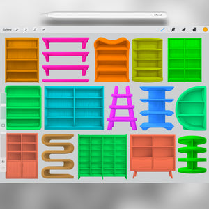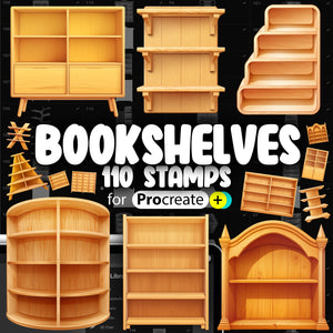 Stop wasting hours drawing bookshelves from scratch — with these 110 Bookshelves Stamp Brushes, you’ll always have ready-made bookshelves elements at your fingertips.