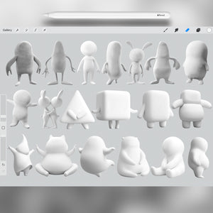 110 Procreate 3D Cute Characters Base Bodies Stamp Brushes