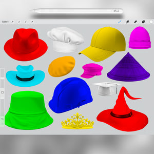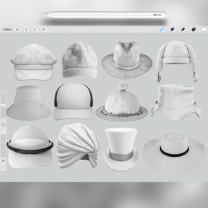This Procreate stamp set is the ultimate tool for anyone who wants to design fashionable characters, add unique accessories, or quickly sketch hats and headpieces with ease.