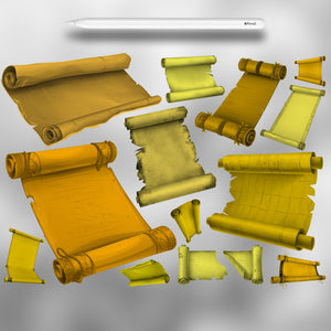 This Procreate stamp set is the ultimate tool for anyone who wants to design mystical props, draw vintage documents, or add aged scrolls to your art.