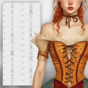 Stop wasting hours searching for references or redrawing basic elements from scratch — with 110 corset stamp brushes, you’ll always have ready‑made inspiration at your fingertips.