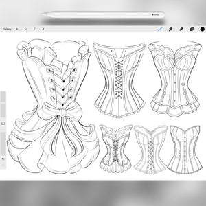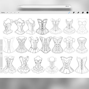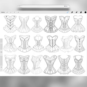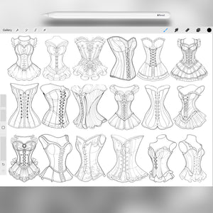 These Procreate corset brushes are perfect for fashion illustration, vintage outfit design, and creative croquis. With Procreate dress stamps, vintage corset brushes, and fashion clothing stamps, you can design elegant outfits, sketch characters in historical fashion, or create modern corset-inspired looks. Ideal for Procreate fashion sketches, vintage art, and outfit design projects.