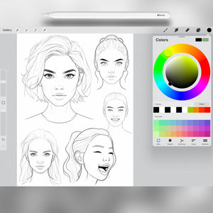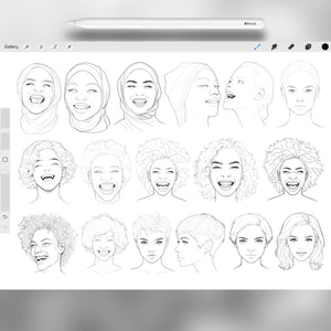 This Procreate stamp set is the ultimate tool for anyone who wants to practice portrait drawing, design characters, or quickly sketch female head references for their art.