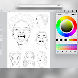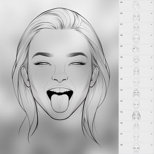 This Procreate stamp set is the ultimate tool for anyone who wants to practice portrait drawing, design characters, or quickly sketch female head references for their art.
