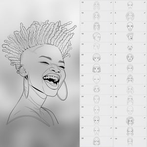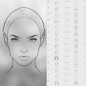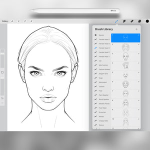 This Procreate stamp set is the ultimate tool for anyone who wants to practice portrait drawing, design characters, or quickly sketch female head references for their art.