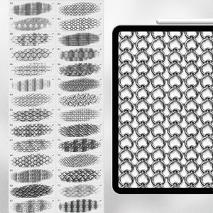 This Procreate texture set is the ultimate tool for anyone who wants to add medieval plates, chainmail and metallic armor details to their digital illustrations.