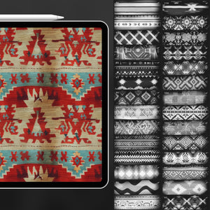 This Procreate pattern set is the ultimate tool for anyone who wants to bring the spirit of traditional Navajo and Ganado weaving into their digital art — with authentic, textile-inspired motifs that repeat flawlessly.