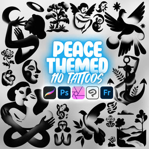 110 Peace Themed Tattoo Stamps for Procreate and Photoshop