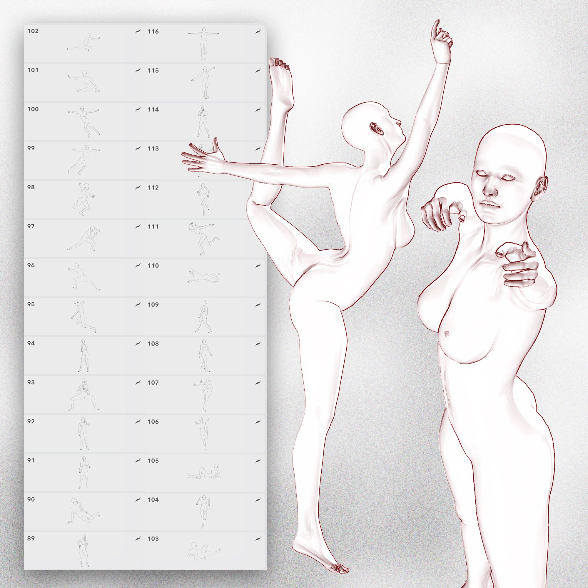 Stop wasting hours looking for female action references or redrawing the same poses — with 110 Women Action Pose Stamps, you’ll always have ready-made, powerful female figures at hand.