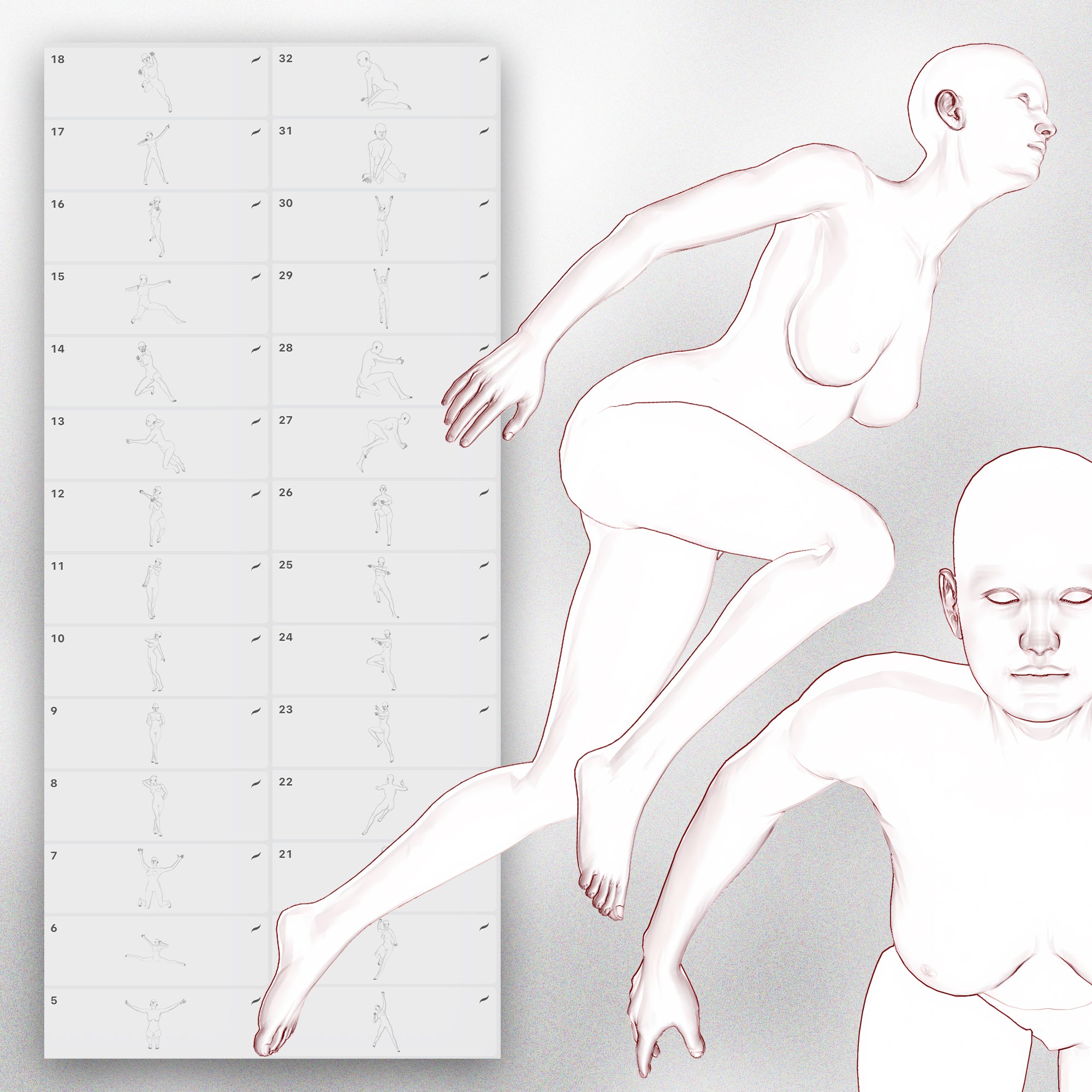 Join & Download free⚡ Improve your Procreate artwork with female action pose stamps in seconds!
