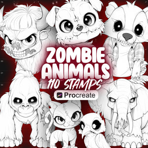 Join & Download freeβ‘ Add spooky-cute zombie animals to your Procreate artwork in seconds!
