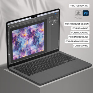 The patterns come in high-resolution JPEG and .PAT (Photoshop pattern) formats.