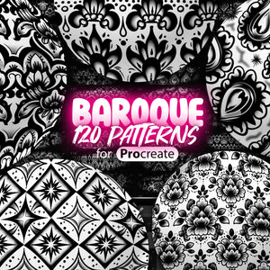 This Procreate pattern set is the ultimate tool for anyone who wants to add dramatic elegance, intricate floral ornaments, and the luxury of Baroque style to their digital art — all with perfectly repeatable designs.