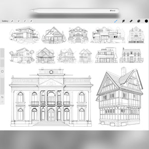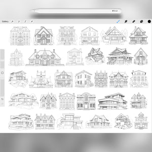 Stop drawing houses from scratch โ with 120 House Stamp Brushes, youโll always have a diverse set of architectural building blocks at your fingertips.