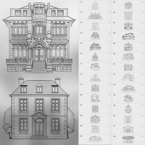 โ๏ธ Includes a variety of house templates โ cottages, modern homes, and architectural sketches