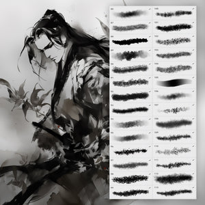 ✔️ Includes ink brushes, grunge textures, glimmer strokes, and water-ink painting effects