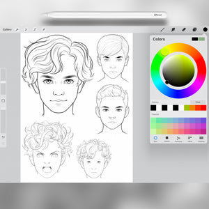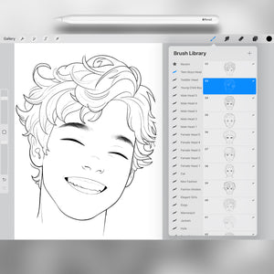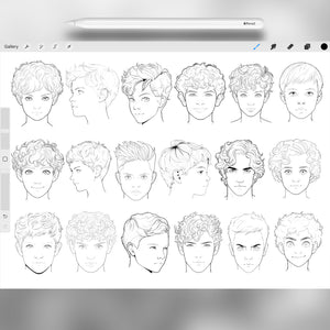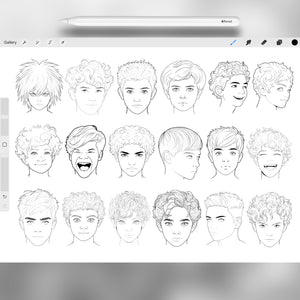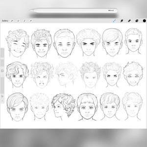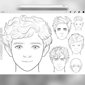 This Procreate stamp set is the ultimate tool for anyone who wants to practice portrait drawing, design characters, or quickly sketch boys head references for their art.