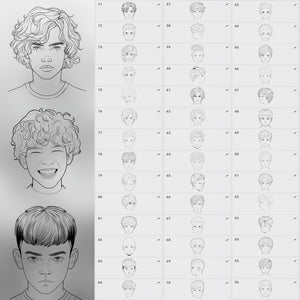 Stop wasting time redrawing the same head shapes over and over โ with 120 Teen Boy's Heads Stamps, youโll always have a reliable set of portrait foundations at your fingertips.