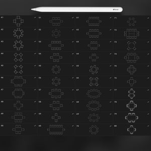 These Procreate and Photoshop table block brushes are perfect for architects, interior designers, and illustrators. With ready-made table stamps, you can quickly create professional layouts, visualize stylish interiors, or experiment with different seating arrangements. Whether you’re working on 2D plans, mockups, or personal design projects, these brushes will adapt to your workflow.