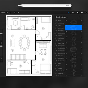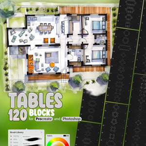 Stop wasting hours drawing tables from scratch — with 120 Table Block Stamp Brushes, you’ll always have a full library of furniture elements at your fingertips.