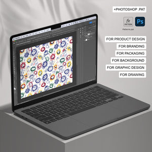 The patterns come in high-resolution JPEG and .PAT (Photoshop pattern) formats.