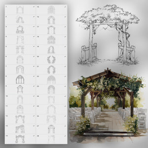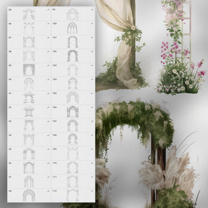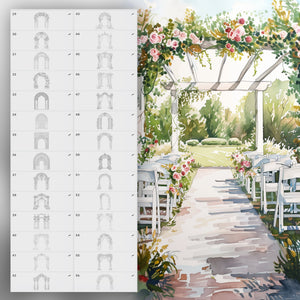 Stop wasting hours sketching complex decorations from scratch — with 130 Wedding Arch Stamps, you’ll always have ready-made floral, circle, and wooden arches at your fingertips.
