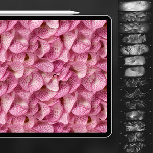 This Procreate texture set is the ultimate tool for anyone who wants to add layered petals, soft blooms and floral detail to their digital illustrations.