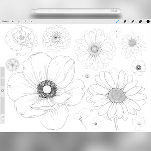 This Procreate stamp set is the ultimate tool for anyone who wants to create floral illustrations, design patterns, or add realistic flowers to their art.