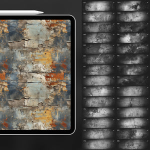 ✔️ Includes cracked surfaces, graffiti splatters, rust patches and weathered paper