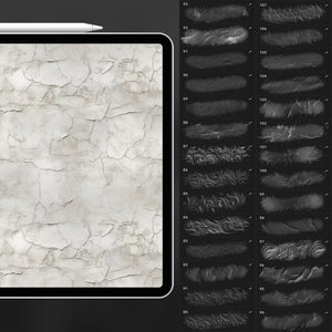 These Procreate stucco brushes capture the tactile qualities of hand-applied plaster — from subtle trowel strokes to textured reliefs. They imbue your art with architectural elegance and weathered charm.