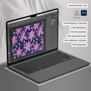 The patterns come in high-resolution JPEG and .PAT (Photoshop pattern) formats.