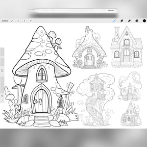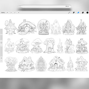 These Procreate fairy house brushes are perfect for fantasy illustration, storybook art, and magical environment design. With ready-made Procreate fantasy fairy house stamps, you can effortlessly create cozy mushroom houses, mystical treehouse scenes, or whimsical cottage layouts using the Procreate fairy home stamps. Whether you're working on children’s books, game art, narrative comics, or enchanted landscapes, these brushes let you work faster, stay imaginative, and fill your art with wonder.