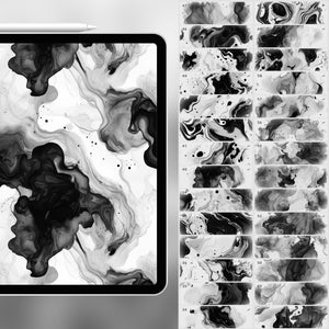 These Procreate ink‑in‑water brushes bring organic motion to your digital canvas. Whether you’re illustrating dreamlike scenes, designing modern art or adding dramatic plumes to your work, these textures flow beautifully. Perfect for artists searching for Procreate ink in water texture brushes, smoke patterns and flowing dye effects.