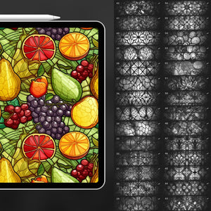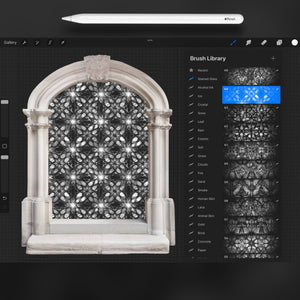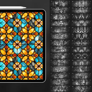 These Procreate stained glass brushes infuse your art with glowing, colourful designs reminiscent of cathedral windows. Whether youβre illustrating fantasy landscapes, designing modern mosaics or adding a rainbow of light to your projects, these brushes adapt effortlessly. Perfect for artists seeking Procreate stained glass texture brushes, mosaic patterns and luminous window effects.
