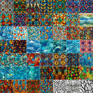 These stained glass textures will quickly become a favourite in your creative toolkit. With them you can: