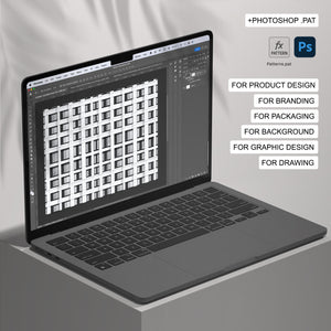 The patterns come in high-resolution JPEG and .PAT (Photoshop pattern) formats.