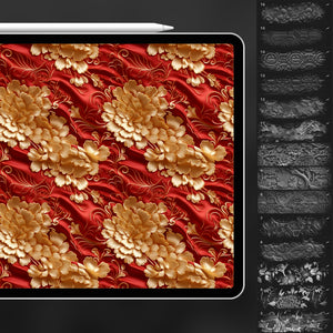 These Procreate Chinese fabric patterns are perfect for ornamental illustration, cultural design projects, and decorative surface design. With seamless motifs — from flowing waves to floral ornaments — you can instantly transform a blank canvas into artwork with a traditional yet modern feel. Whether you’re creating fashion patterns, book covers, or personal projects, these Procreate brushes give your work elegance and authenticity.