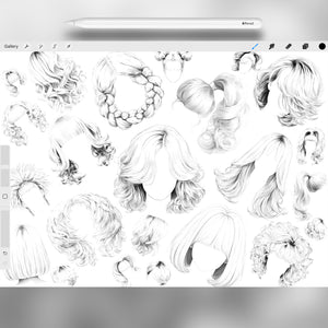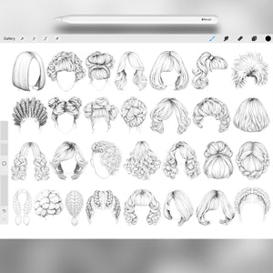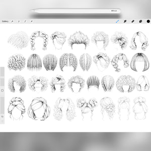 150 Procreate Female Hairstyles Stamps Brushes