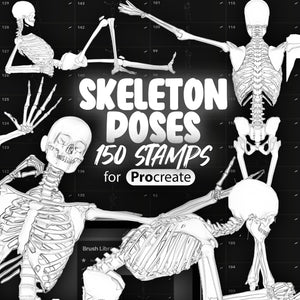 This Procreate stamp set is the ultimate tool for artists who want to study skeletal structure, create dynamic characters, practice anatomy from the inside out, or add skull and skeleton references to their digital art.