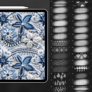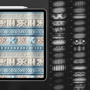 This Procreate texture set is the ultimate tool for anyone who wants to add knitted patterns, cable stitches and warm sweater fabrics to their digital illustrations.