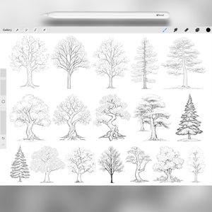 These Procreate tree brushes are perfect for design natural landscapes, forests, and parks with diverse tree shapes and create botanical illustrations featuring various trees and leaves, and more. Use them to bring tree themes to life and explore endless creativity with Procreate Tree brushes, Tree stamp brushes, Tree Procreate stamps, digital tree art, tree illustration, tree drawing, tree design, tree clipart, tree Procreate brushes, botanical tree stamps, forest illustration, nature stamp brushes.