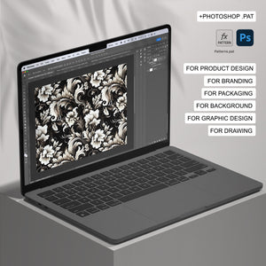 The patterns come in high-resolution JPEG and .PAT (Photoshop pattern) formats.