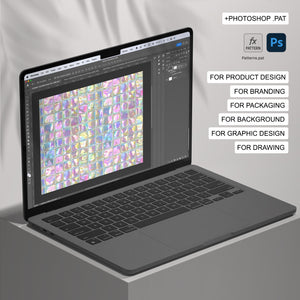 The patterns come in high-resolution JPEG and .PAT (Photoshop pattern) formats.