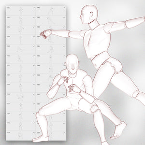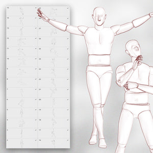 This set is built for artists who want to practice figure construction, study proportion and perspective, design characters, or explore dynamic gestures using simplified male mannequins.