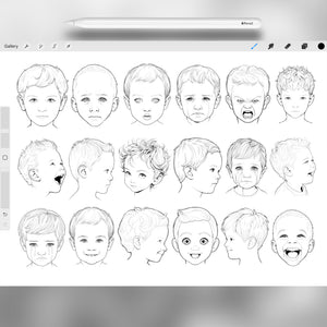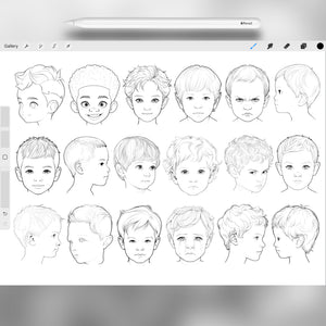 Join & Download freeโก Improve your Procreate artwork with ready-made young child boy's head stamps in seconds!