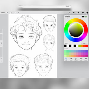 This Procreate stamp set is the ultimate tool for anyone who wants to practice portrait drawing, design characters, or quickly sketch boys head references for their art.